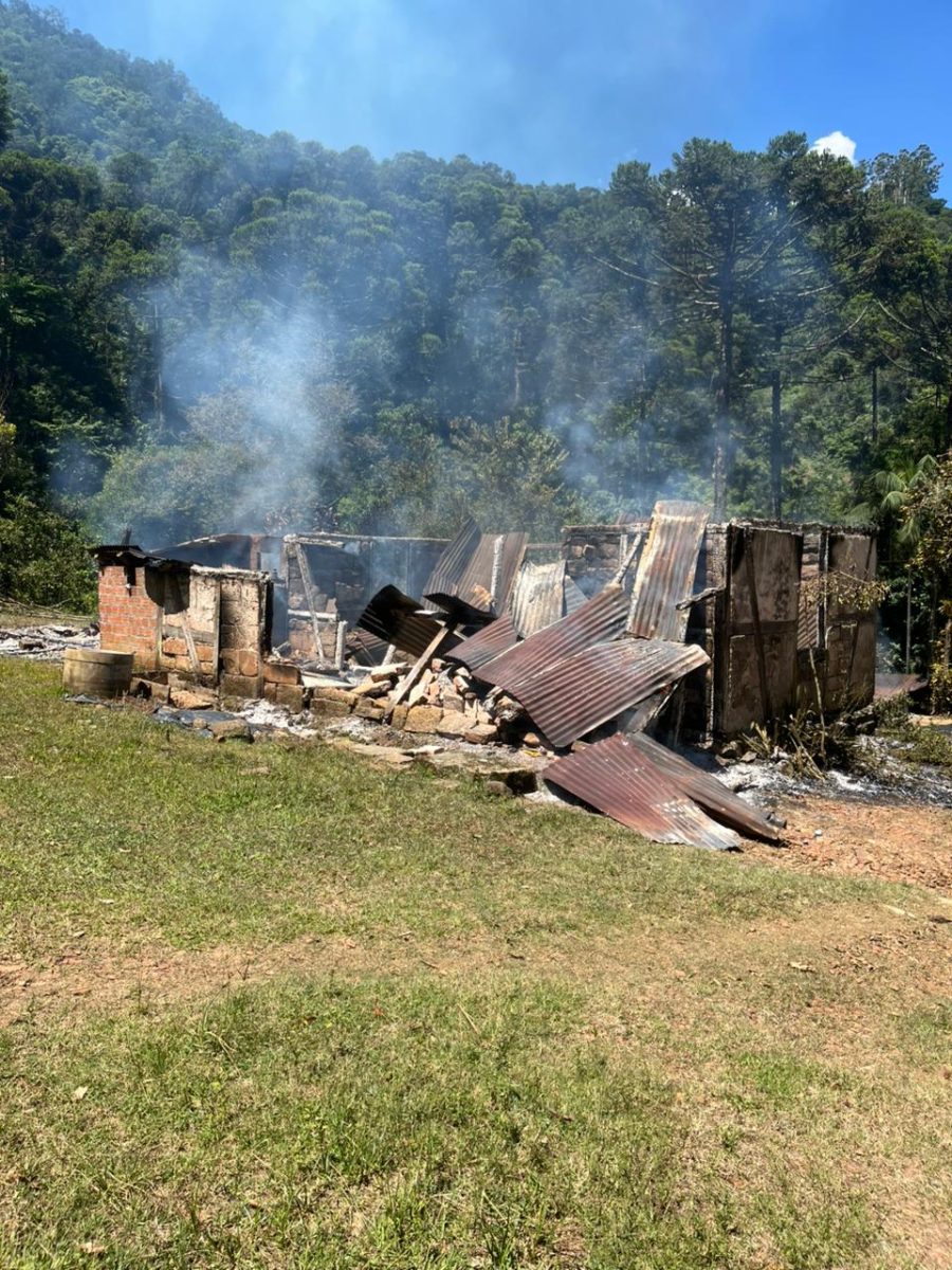 A guarnição da BM se deslocou até o local e entrou em contato com o Corpo de Bombeiros, que já havia sido informado sobre o incêndio. A residência, localizada em área de difícil acesso, foi totalmente destruída pelas chamas antes da chegada dos bombeiros.