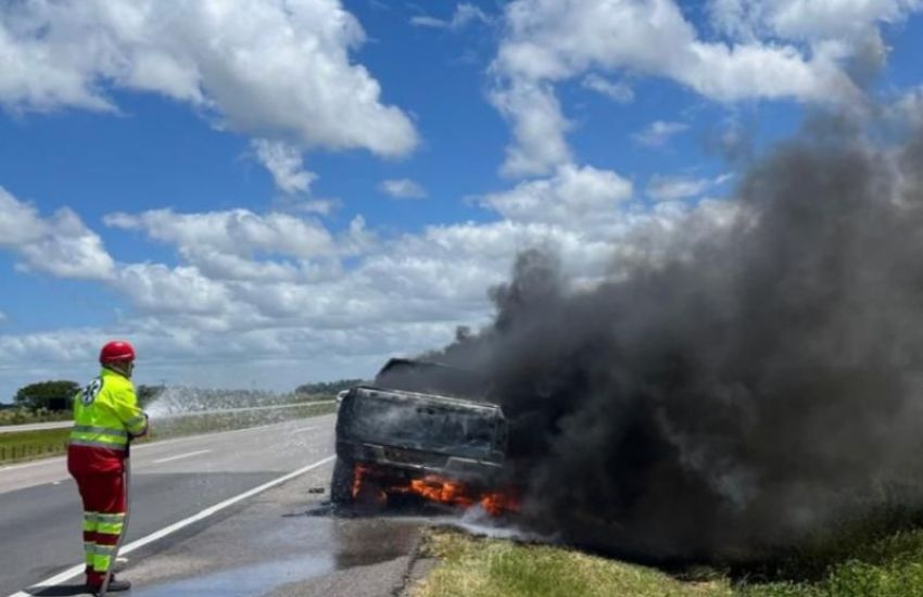 caminhonete pegou fogo na BR-116 entre São Lourenço do Sul e Pelotas. O fato