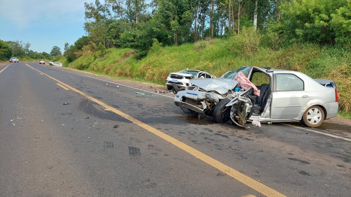 Colisão envolveu três automóveis e aconteceu no acesso para Linha Cerro dos Bois
