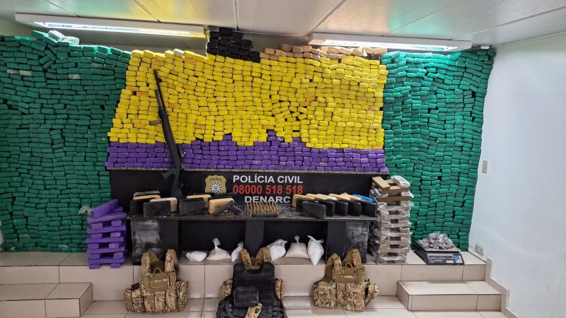 da 3ª Delegacia de Investigação do Narcotráfico (DIN), apreendeu mais de uma tonelada de maconha, armas