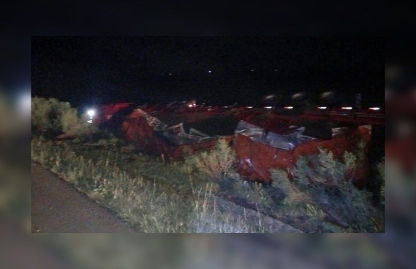 no sentido interior-Capital saiu de pista e tombou. O veículo de carga foi parar