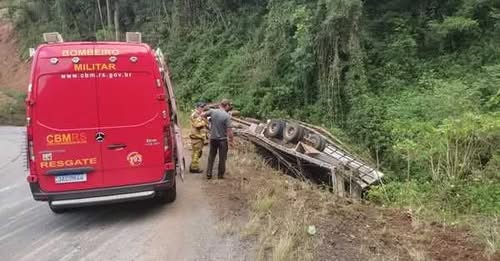 Acidente na ERS-441 ocorreu em trecho com curvas acentuadas; veículo saiu da pista e capotou ao lado da rodovia