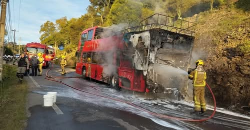 Ônibus de turismo pega fogo durante passeio pelo Vale dos Vinhedos, e...